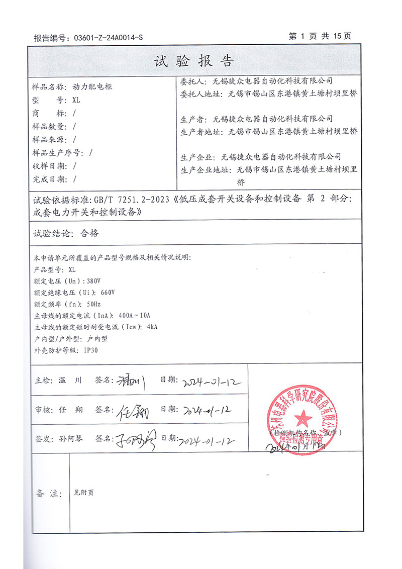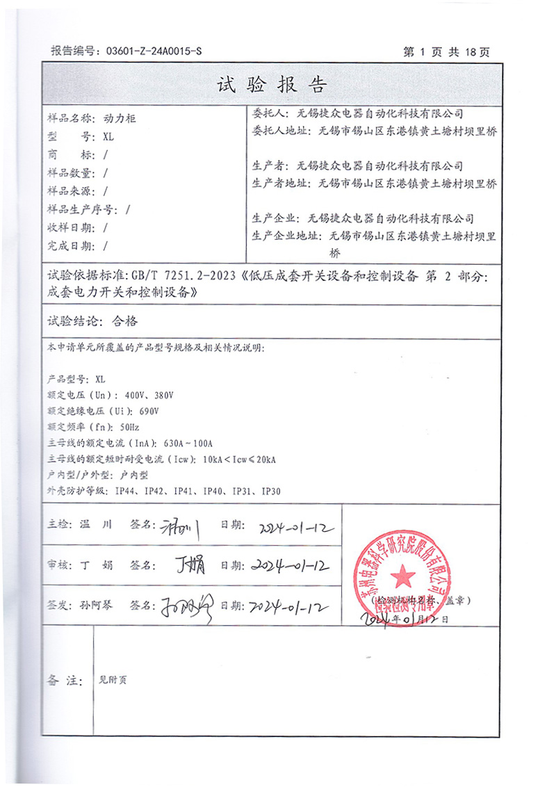 XL動(dòng)力柜 試驗(yàn)報(bào)告2