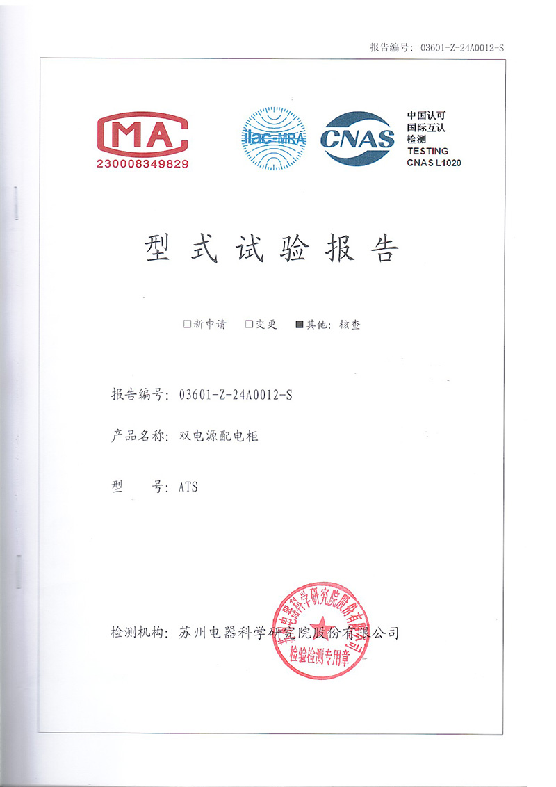 • ATS雙電源配電柜 試驗(yàn)報(bào)告2